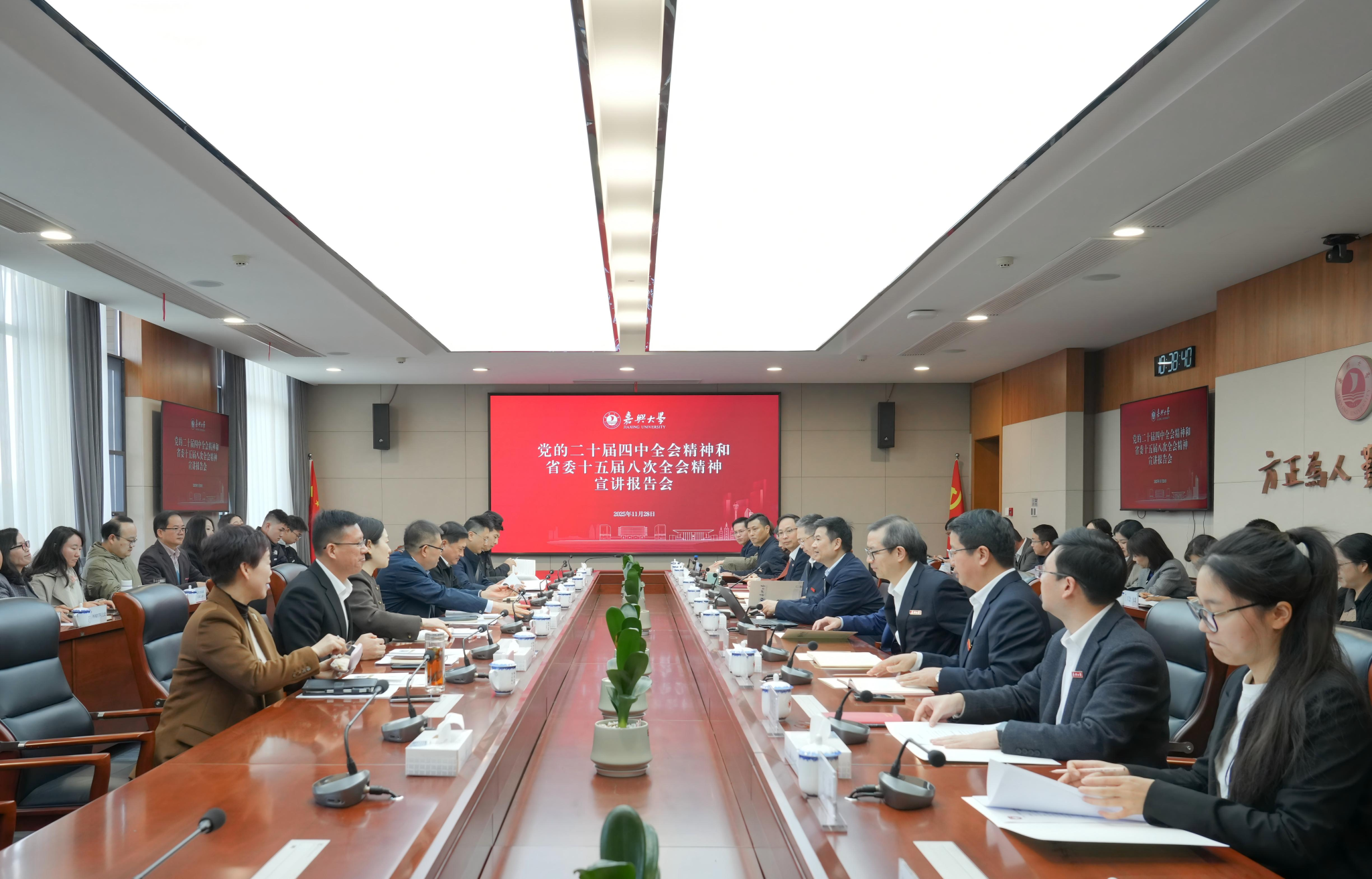 11月28日上午,省政府副省长张雁云到嘉兴大学宣讲党的二十届四中全会精神和省委十五届八次全会精神并开展调研。他强调,要深入贯彻落实党的二十届四中全会精神和省委十五届八次全会精神,牢牢把握红船起航地高校的特殊使命,加快建设有特色、善创新的综合性高水平大学,为高质量发展建设共同富裕示范区取得决定性进展、率先呈现基本实现社会主义现代化生动图景贡献更大力量。